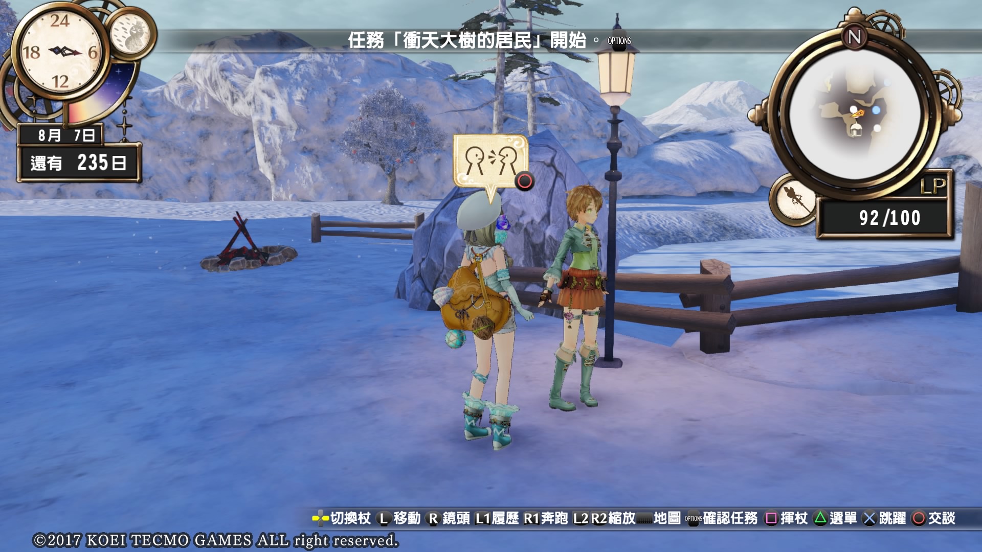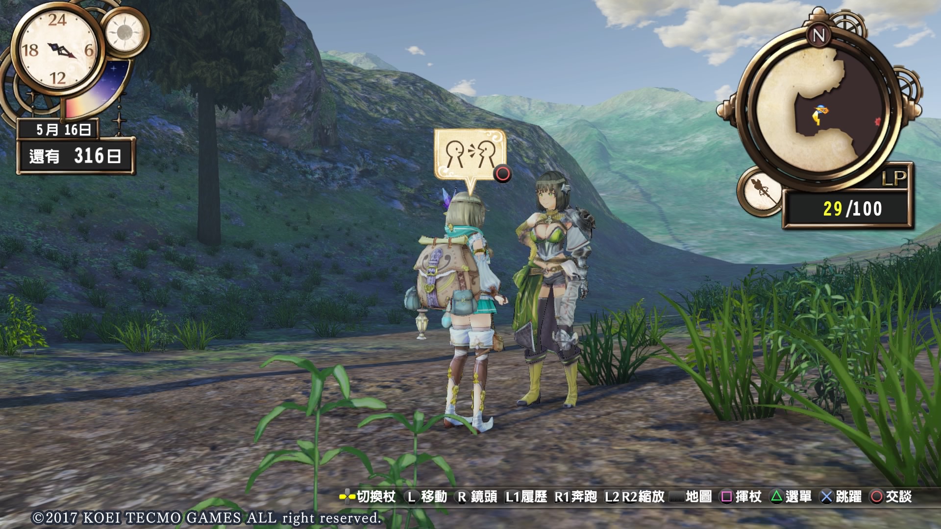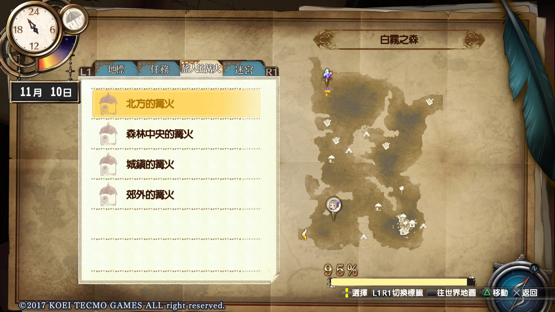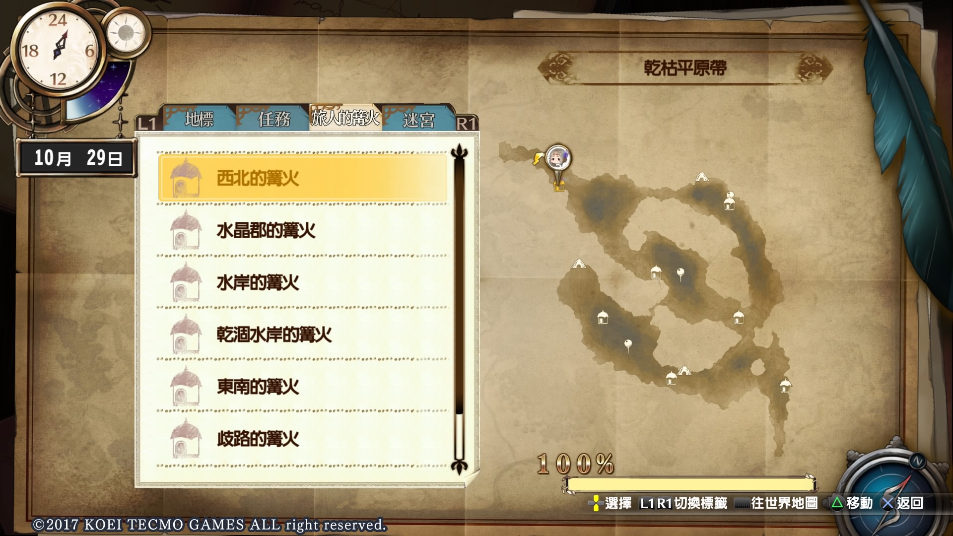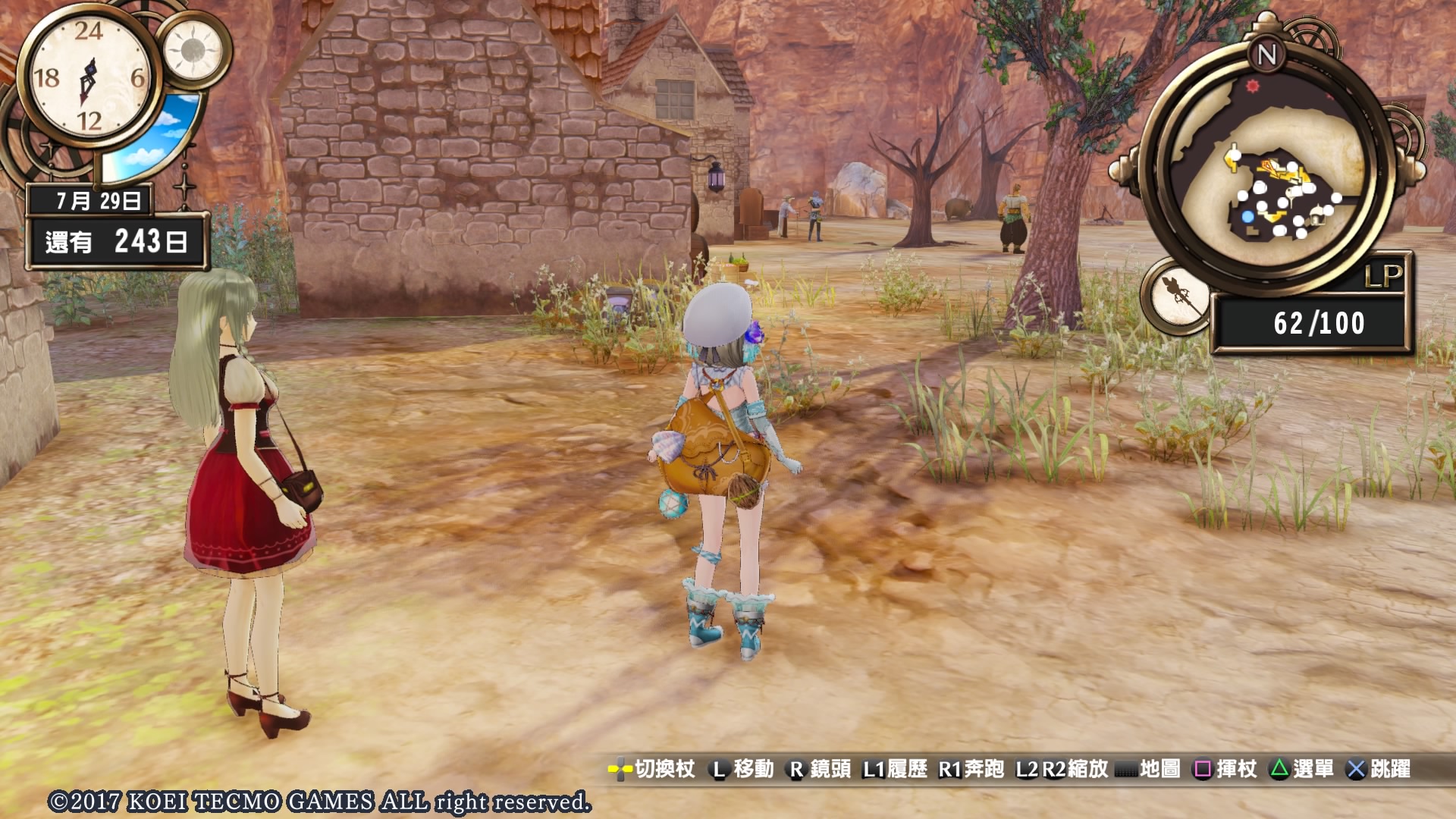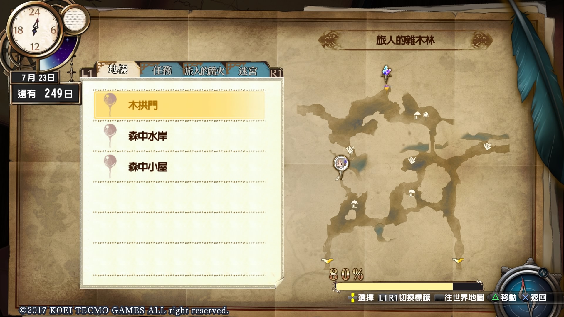 菲莉丝出门找人对话获得炼金灵感,从这时开始推荐善用大地图标记任务,小地图跑图。按 「Touch Pad」 进入大地图,「L1」、「R1」 切换到任务栏,点击任务即可在地图上标记。方便小地图跑图时,查看是不是跑对位置(我只到玩到很后面的时候才知道这个技巧,大雾。)