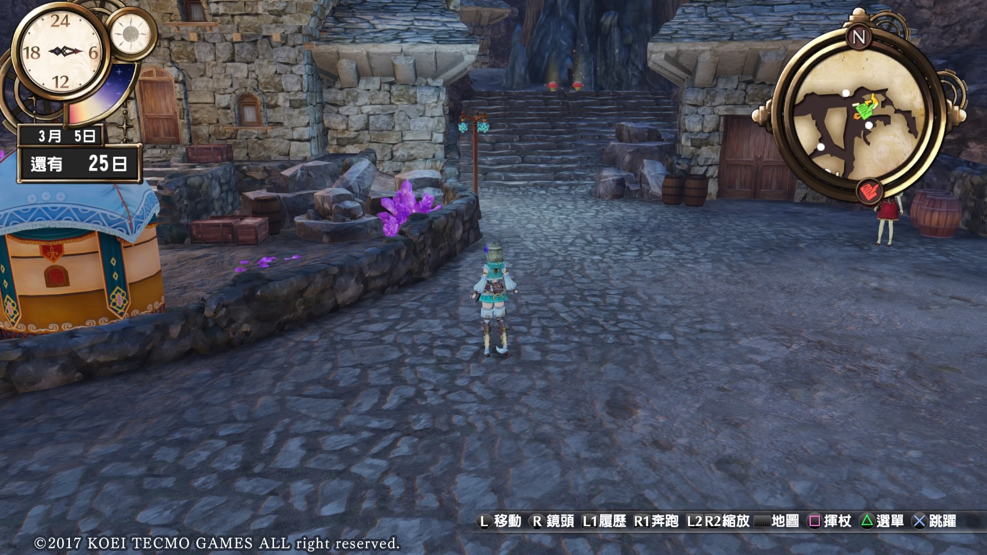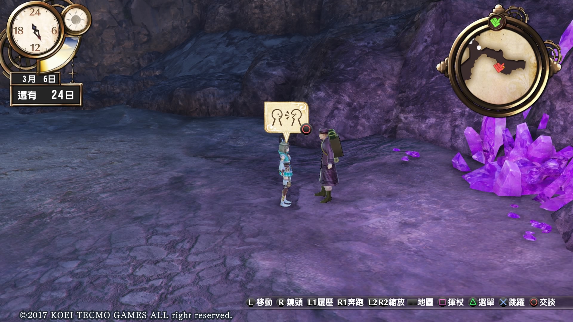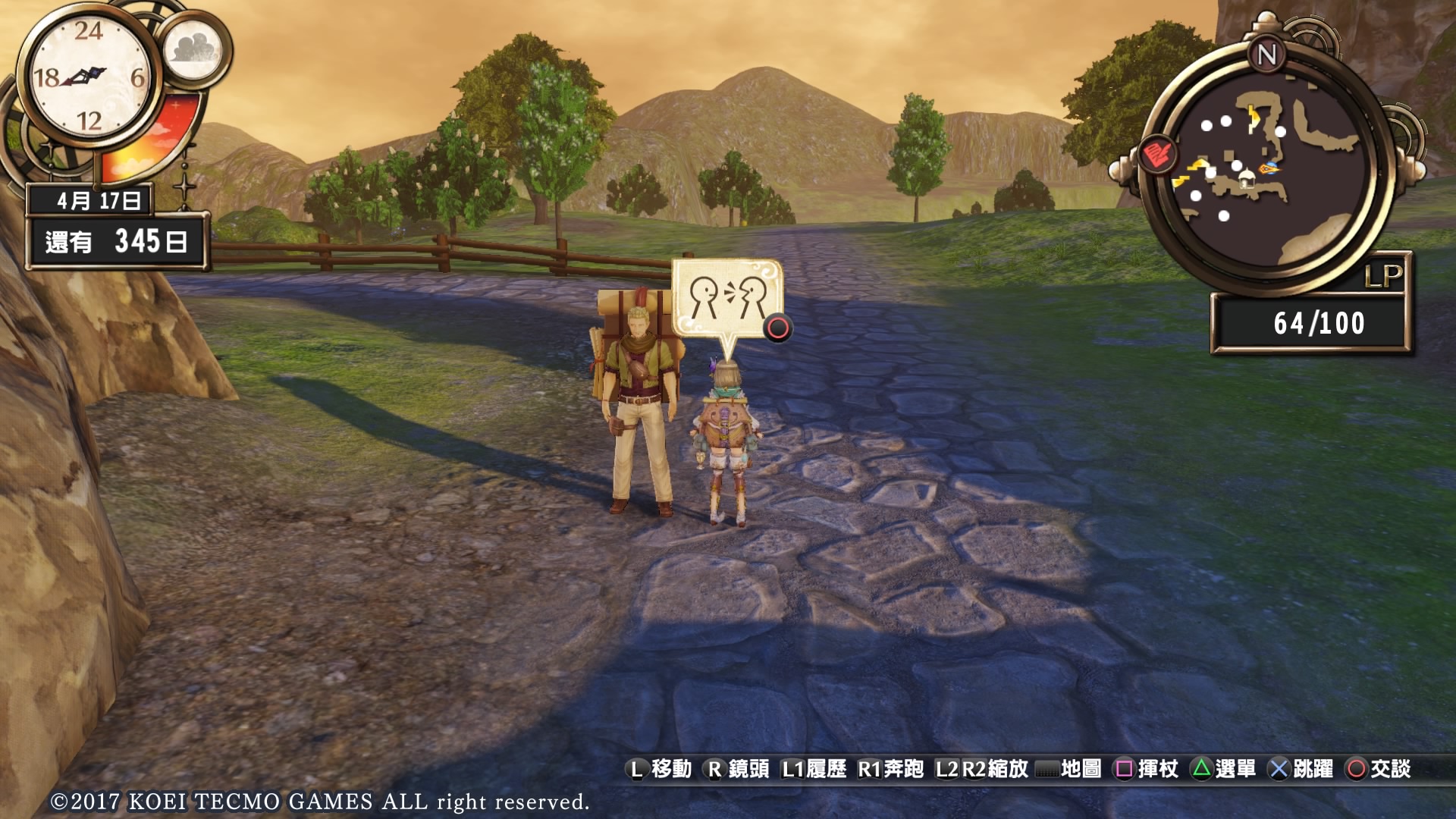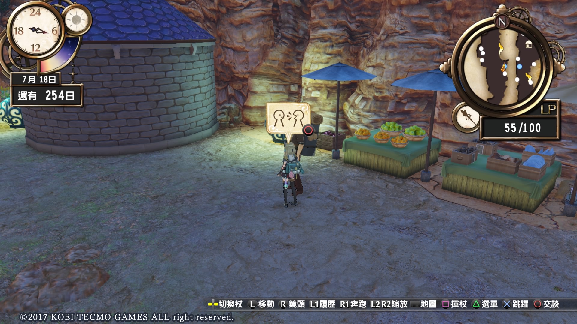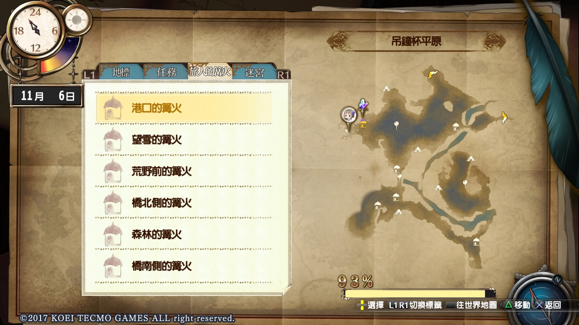 菲莉丝出门找人对话获得炼金灵感,从这时开始推荐善用大地图标记任务,小地图跑图。按 「Touch Pad」 进入大地图,「L1」、「R1」 切换到任务栏,点击任务即可在地图上标记。方便小地图跑图时,查看是不是跑对位置(我只到玩到很后面的时候才知道这个技巧,大雾。)