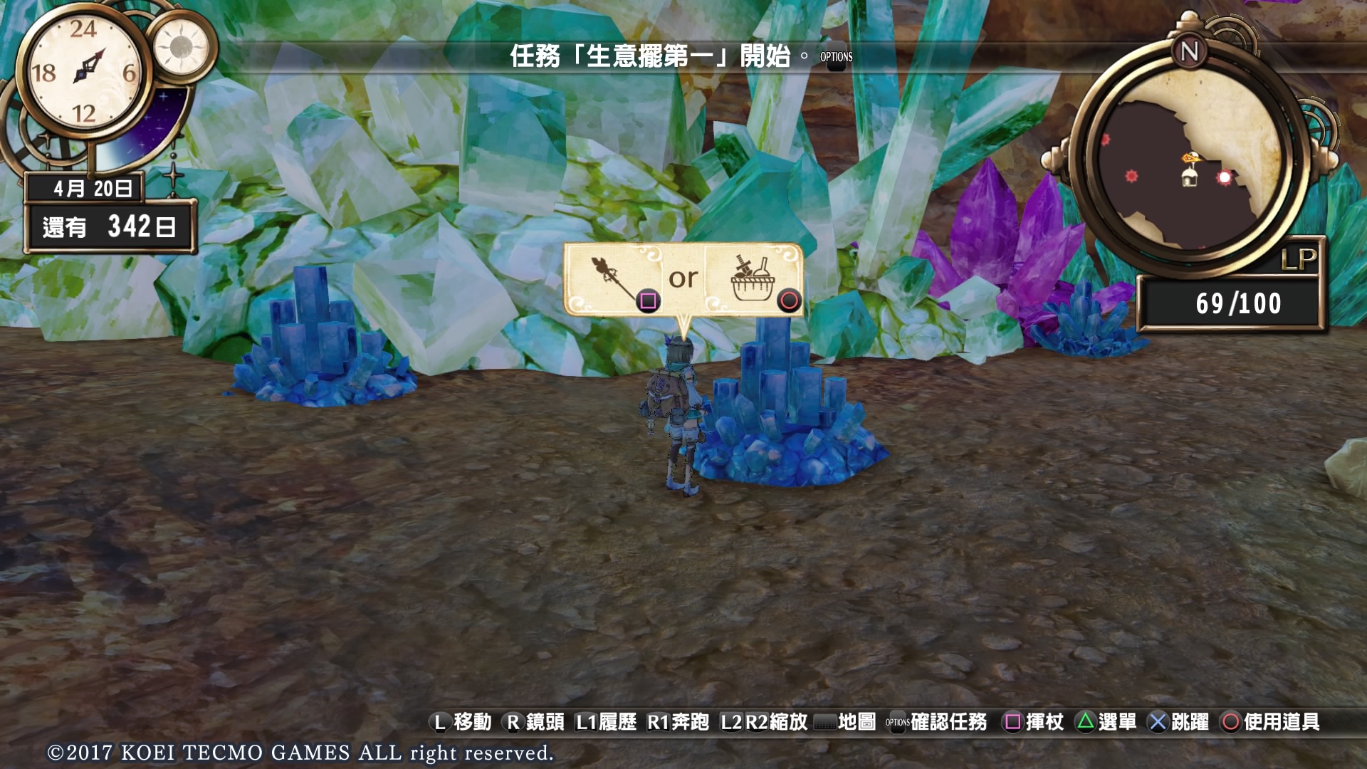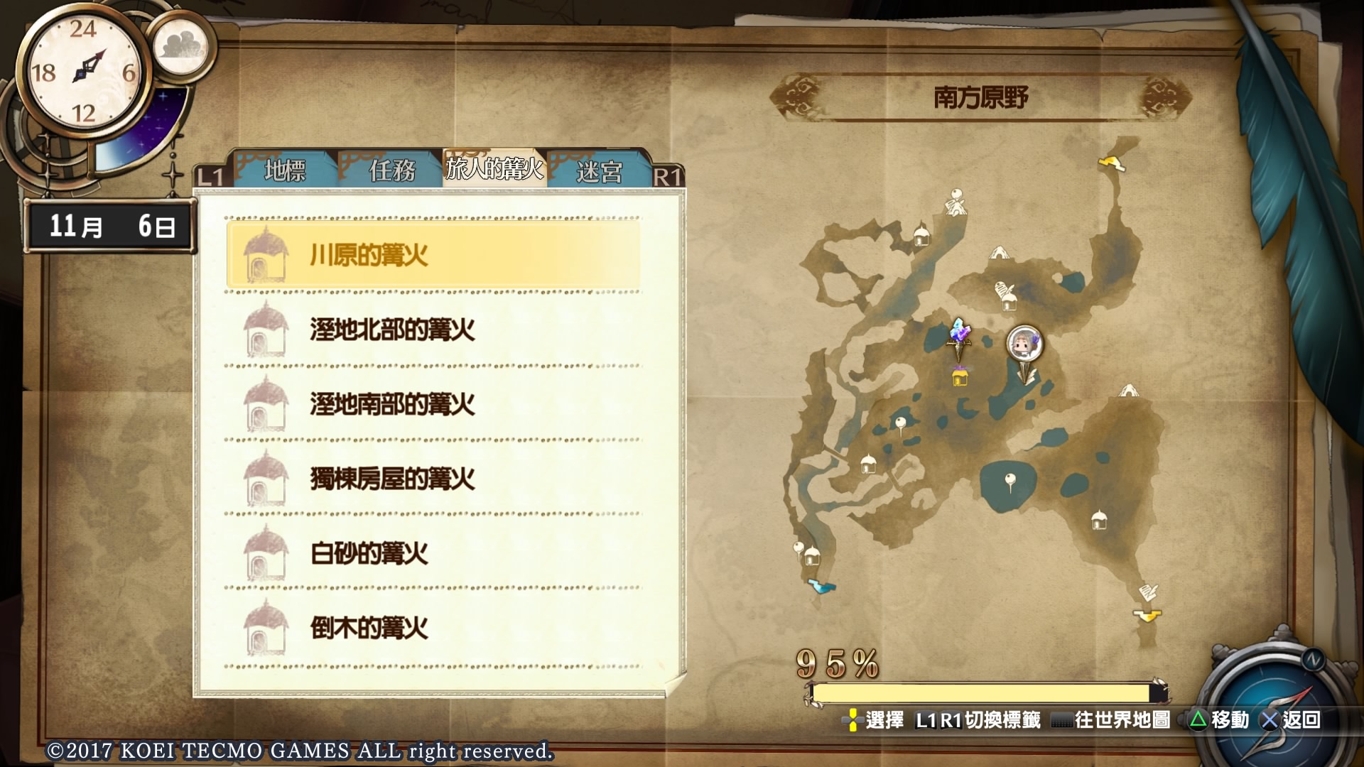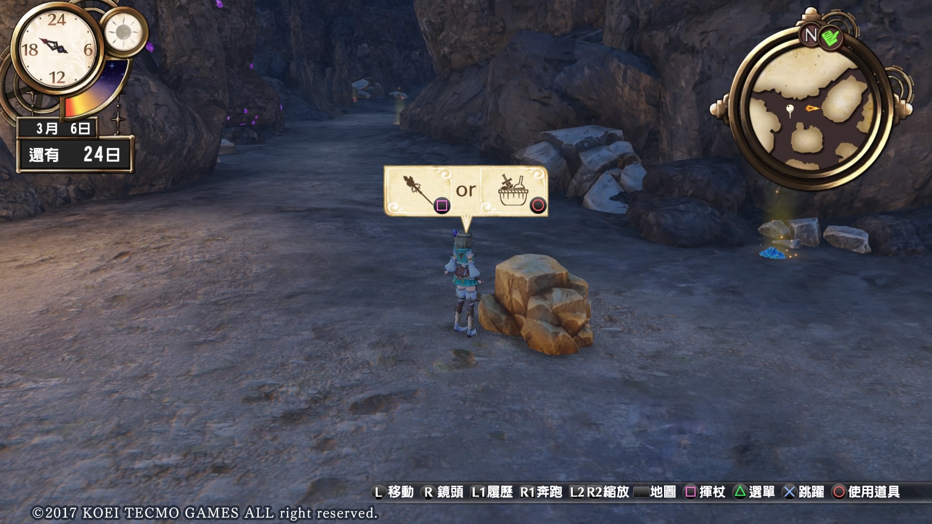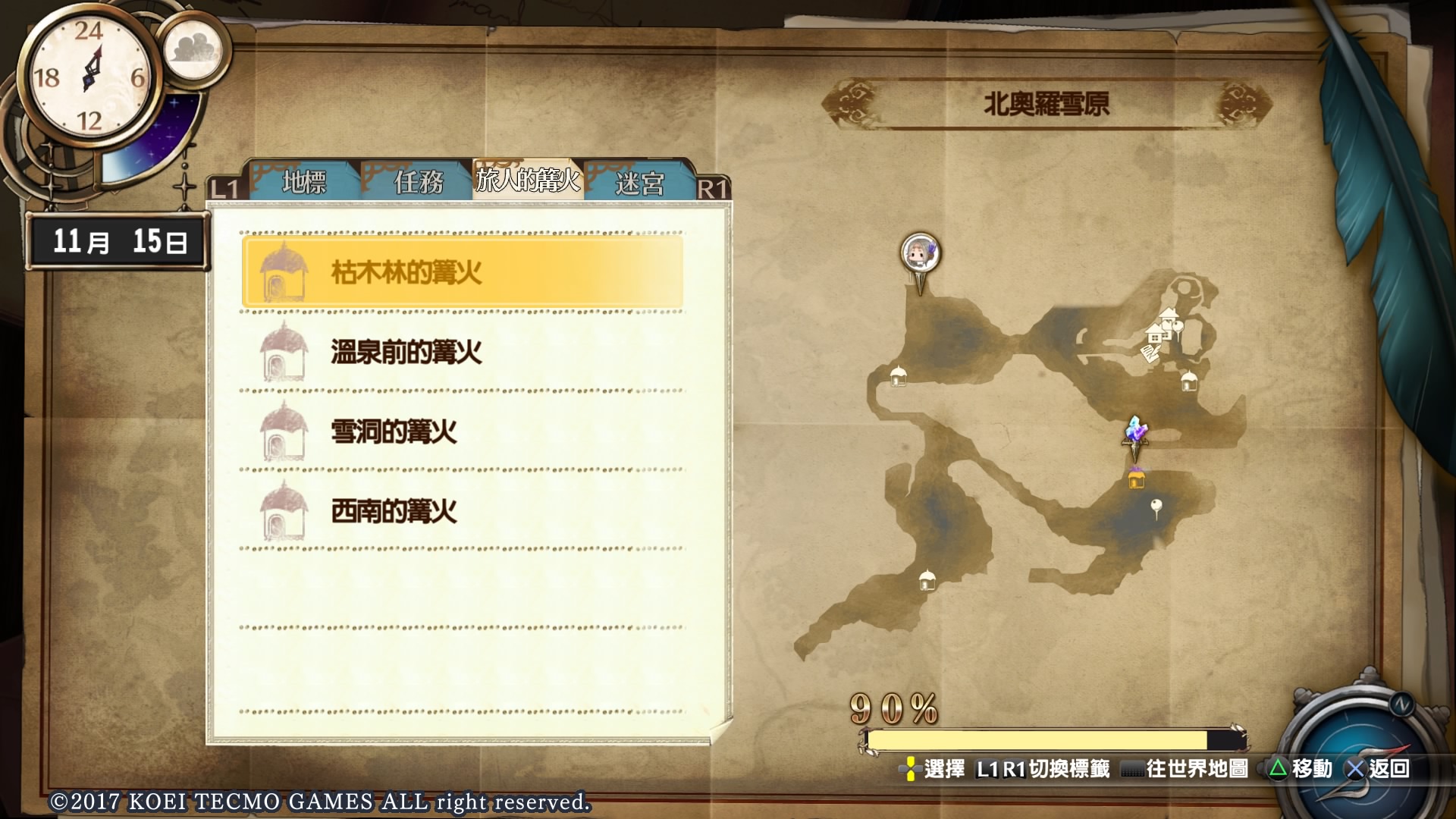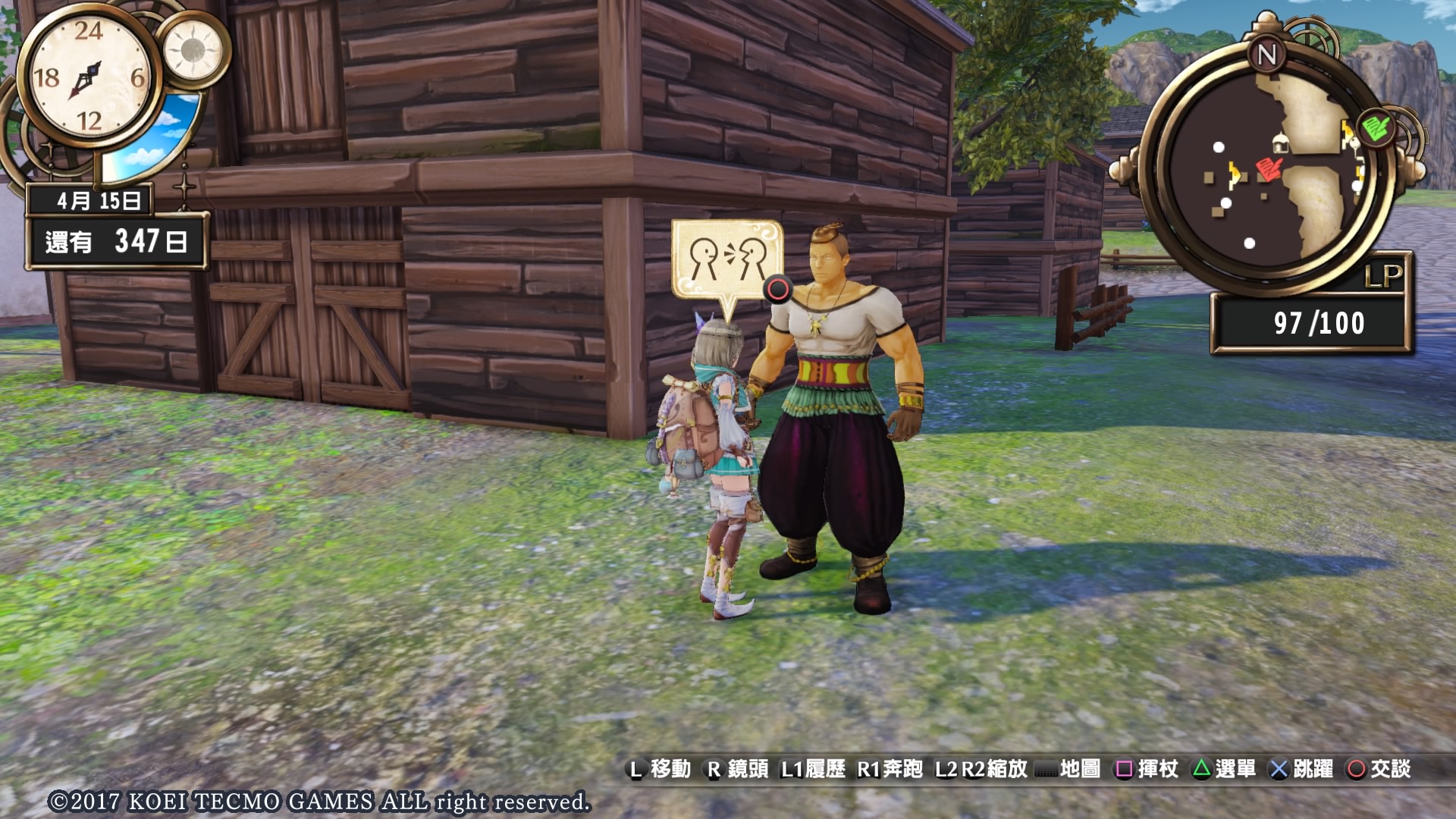 菲莉丝出门找人对话获得炼金灵感,从这时开始推荐善用大地图标记任务,小地图跑图。按 「Touch Pad」 进入大地图,「L1」、「R1」 切换到任务栏,点击任务即可在地图上标记。方便小地图跑图时,查看是不是跑对位置(我只到玩到很后面的时候才知道这个技巧,大雾。)