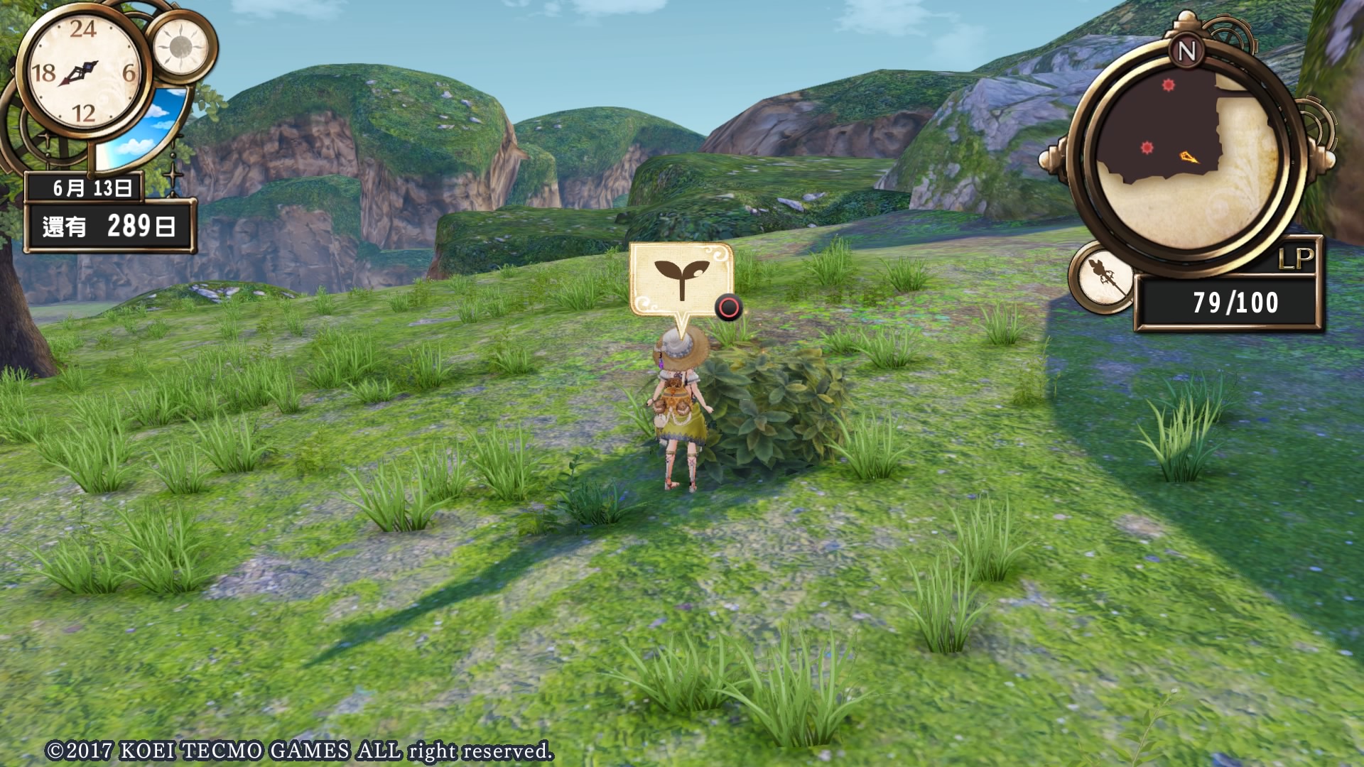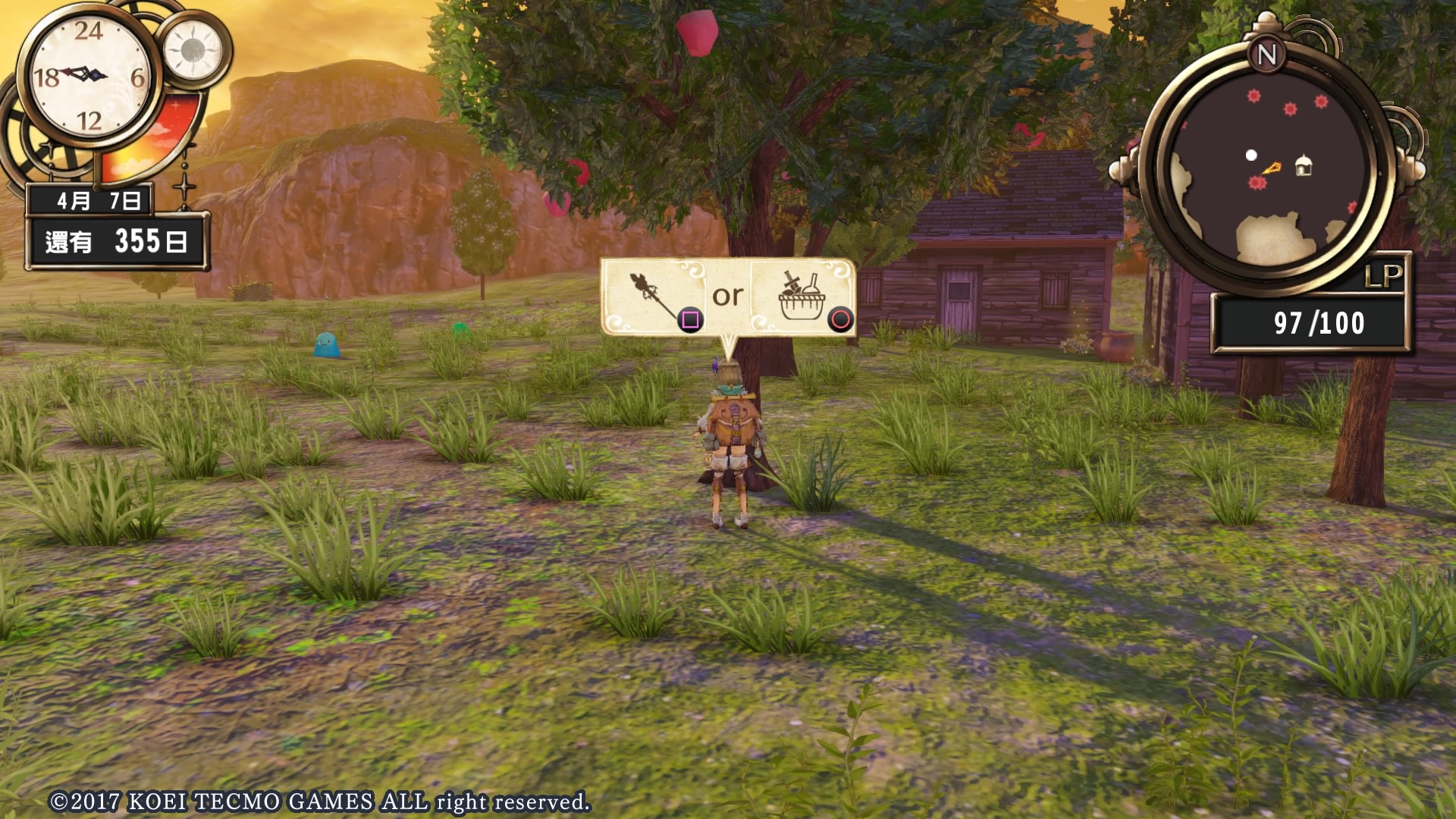 (从黄昏系列之后,工作室的采集就变为跑到闪着不明亮斑的地点,按 「O」 键采集,无需额外的选择采集的东西。本作最大的特色是,可以通过采集点的外观粗略判断采集内容,但是相同外观的采集点,在不同的图里面产出会略有区别。)