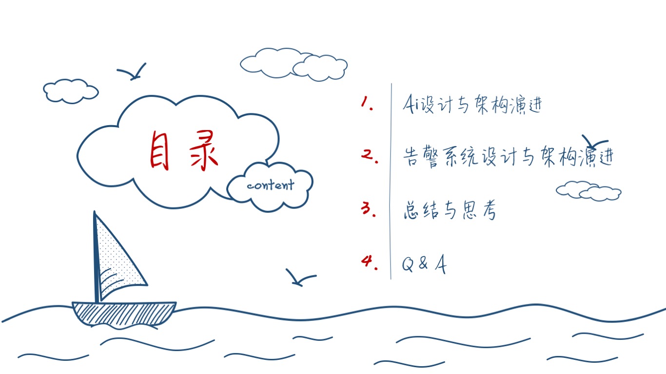 对于 Ai,我不属于它的主要研发,我只是在上面剥离开发了现有的告警系统。所以我就讲讲我接触过的架构部分的演进。本身,就功能部分,其实没有东西。 我在说告警的时候会说的比较细一些。