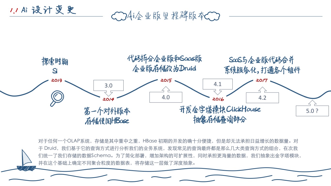 我是15年年底入职OneAPM,17年9月初离职加入咱们这个团队。这期间Ai伴随着业务的需求,也进行了三次大的技术架构演进。最明显的,就是每次演进中,Ai对应的存储在不断变化。同时,比较巧的是,每次架构变化的同时,我们的数据结构也略有不同,并且学习的国外竞品也不大一样。