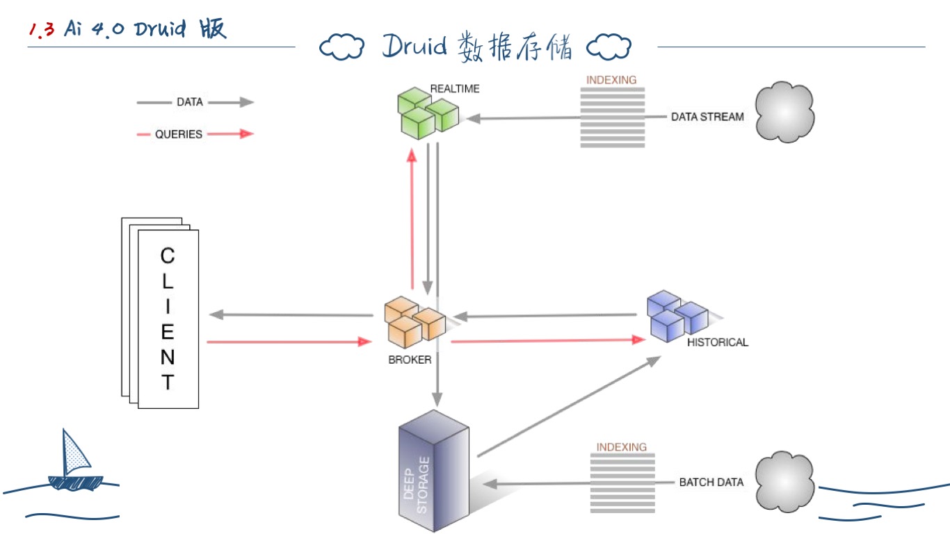 Deep Storage 一般是 HDFS 或者是 NFS,我们在查询的时候,数据来源于 Deep Storage 或者是 Real-time 节点里面的数据。