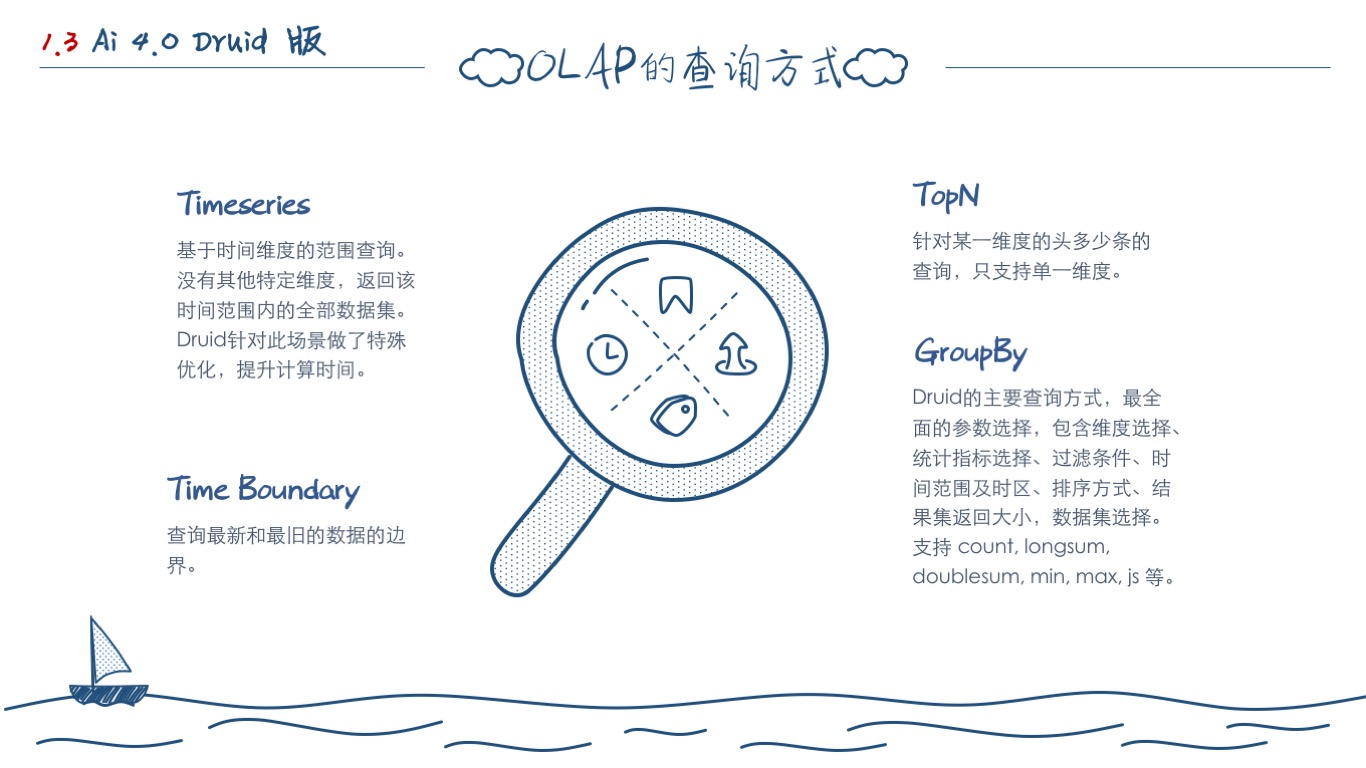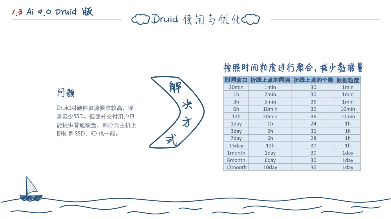 这个时候,来自 IBM 研究院的刘麒赟向我们推荐了Druid,并在我们后面的实践中取代了 HBase 作为主要的 Metric 存储。