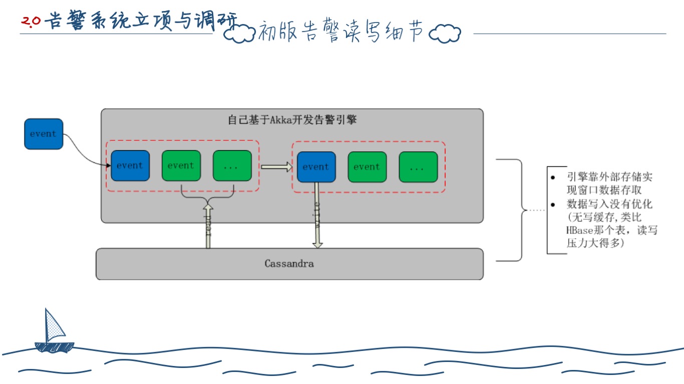 其次,在 2.0 之前的版本,每条指标的计算结果,就算是 Normal 都会存入 Cassandra,这是因为 Flink 版本计算的遗留问题。而我们在设计了告警事件的状态变化告警之后,存储 Normal 变为意义不大。