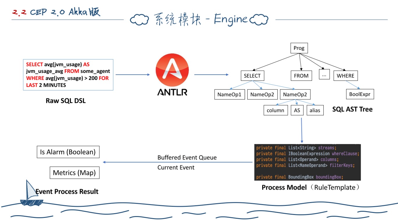 我们基于解析出来的规则对象,在 Engine 层对计算的事件队列和当前事件结合起来,就产生了实际想要的计算结果。