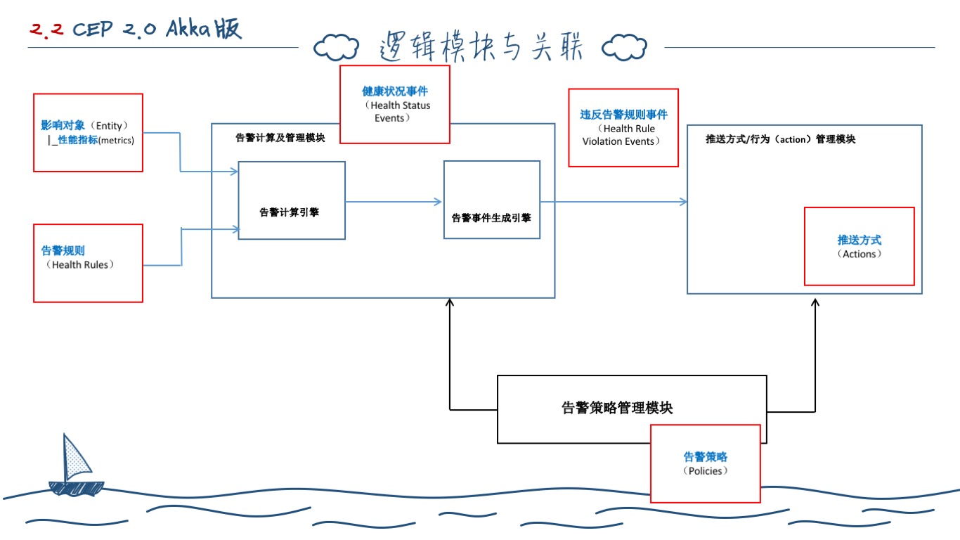 2.0 版本的告警系统主要是 CEP 计算引擎模块,所以在部署上,他是集成在各个业务系统上的。